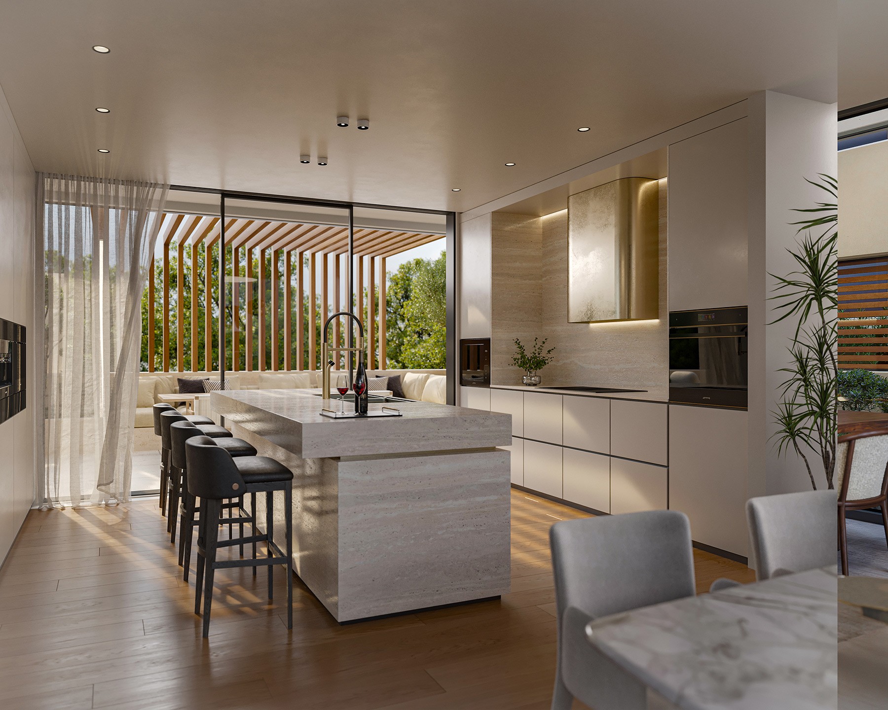 Outdoor kitchen and fire pit lounge
